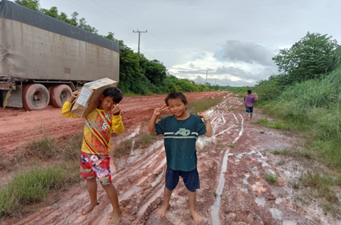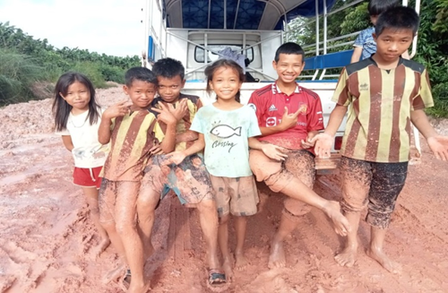 * 우리 차도 진흙탕 속에서 끌려 나오고 있어요. 아이들이 즐겁게 동행하네요